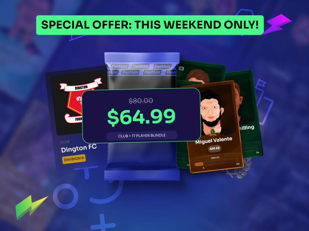 So we've gone back and rebuilt a lot of it. Better rewards for you, a much stronger welcome package for your mate & new milestones to chase throughout your Footium journey. Also for the first time ever to sweeten the deal, a limited-time discount that makes this weekend the best time to get someone into the game.