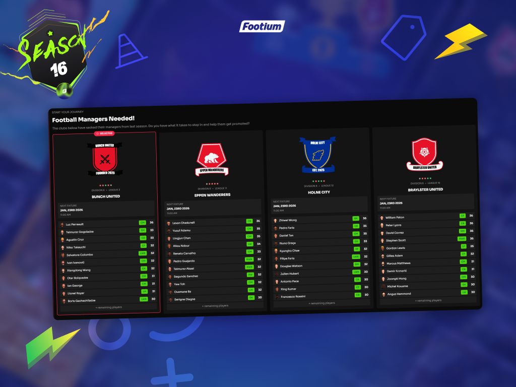 Season 16 welcomes Colombia as the newest nation in Footium, expanding the player pool and adding more variety across squads and leagues.